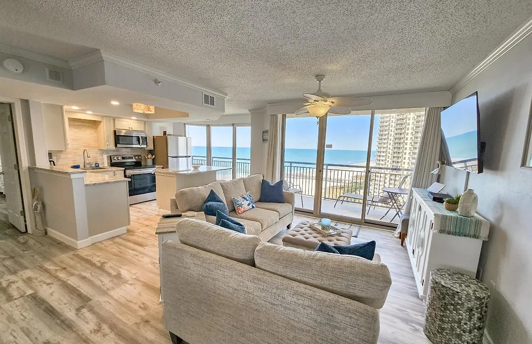 Two-Bedroom Apartment features a fully furnished kitchen equipped with an oven and a dishwasher. Myrtle Beach International airport can be accessed in 27 minutes by car. To enhance their stay at this apartment, guests have the option to engage in activities such as cycling, table tennis, and fishing.
